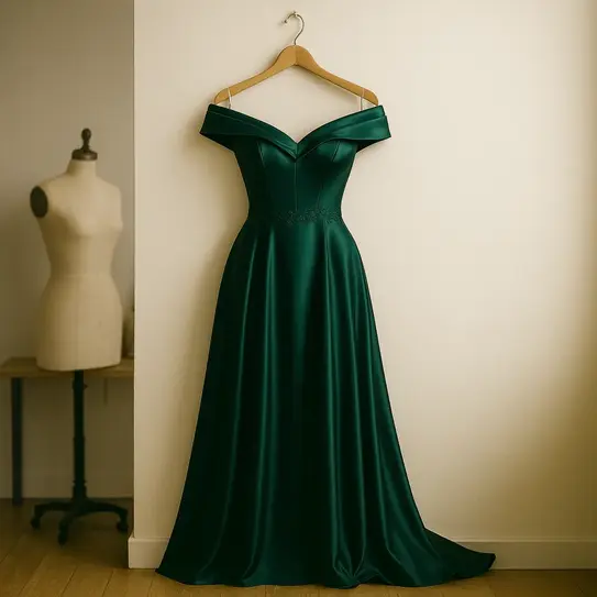 Индивидуальный пошив вечернего платья изумрудного оттенка с отрезным лифом, корсетной посадкой и подбором качественной ткани |