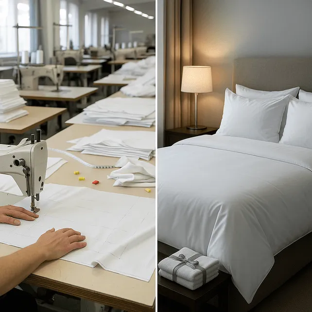 Главная польза для бизнеса — индивидуальный пошив исключает ошибки с размерами. Все параметры фиксируются заранее, что гарантирует довольных постояльцев и отсутствие срочных докупок. Белоснежное бельё, идеально сидящее на кровати, формирует имидж гостиницы и снижает расходы на замены.