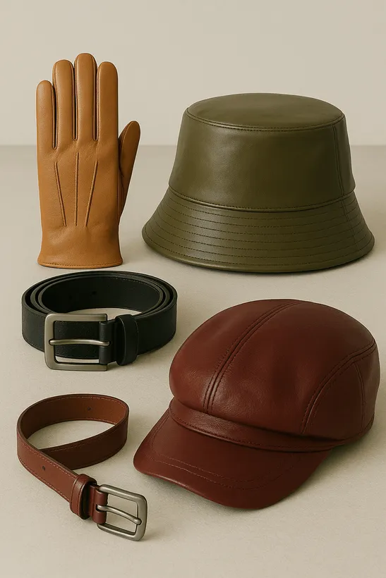 Аксессуары из кожи (перчатки, ремни, кепи/панамы)