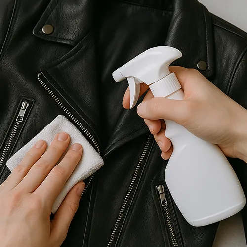 Используем Tarrago Nano Protector. Куртка выдерживает до 50 дождей без разводов, сохраняет цвет и текстуру кожи.