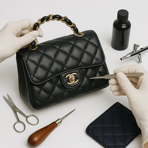 Обращайте внимание на портфолио работ. Спросите о происхождении расходников — оригинальные комплектующие имеют сертификаты. Уточните технологию работ — для люксовых вещей недопустимы грубые швы или универсальные клеи.