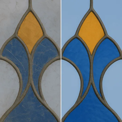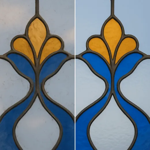 Мы фиксируем результат в чек-листе, оставляем объект идеально чистым, безопасным, не нарушая внутреннюю отделку. Даже хрупкие элементы (витражи с рисунками, декоративной плёнкой) очищаются деликатно, без капли агрессии.