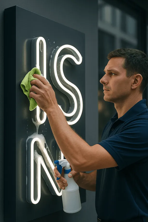 Профессиональная мойка рекламных вывесок и световых коробов с применением безопасных средств. Работаем с любыми типами конструкций: неон, лайтбоксы, световые буквы и LED-экраны.