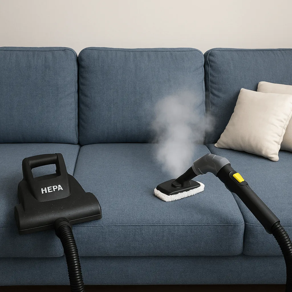 | Что включено | HEPA-пылесос (удаление аллергенов) + паровая обработка 130–170 °C + антимикробные составы (ЧАС/перекись) + тщательная обработка швов, подлокотников и спинки + дезинфекция съёмных подушек с двух сторон + нейтрализация запахов + проветривание и контроль результата |