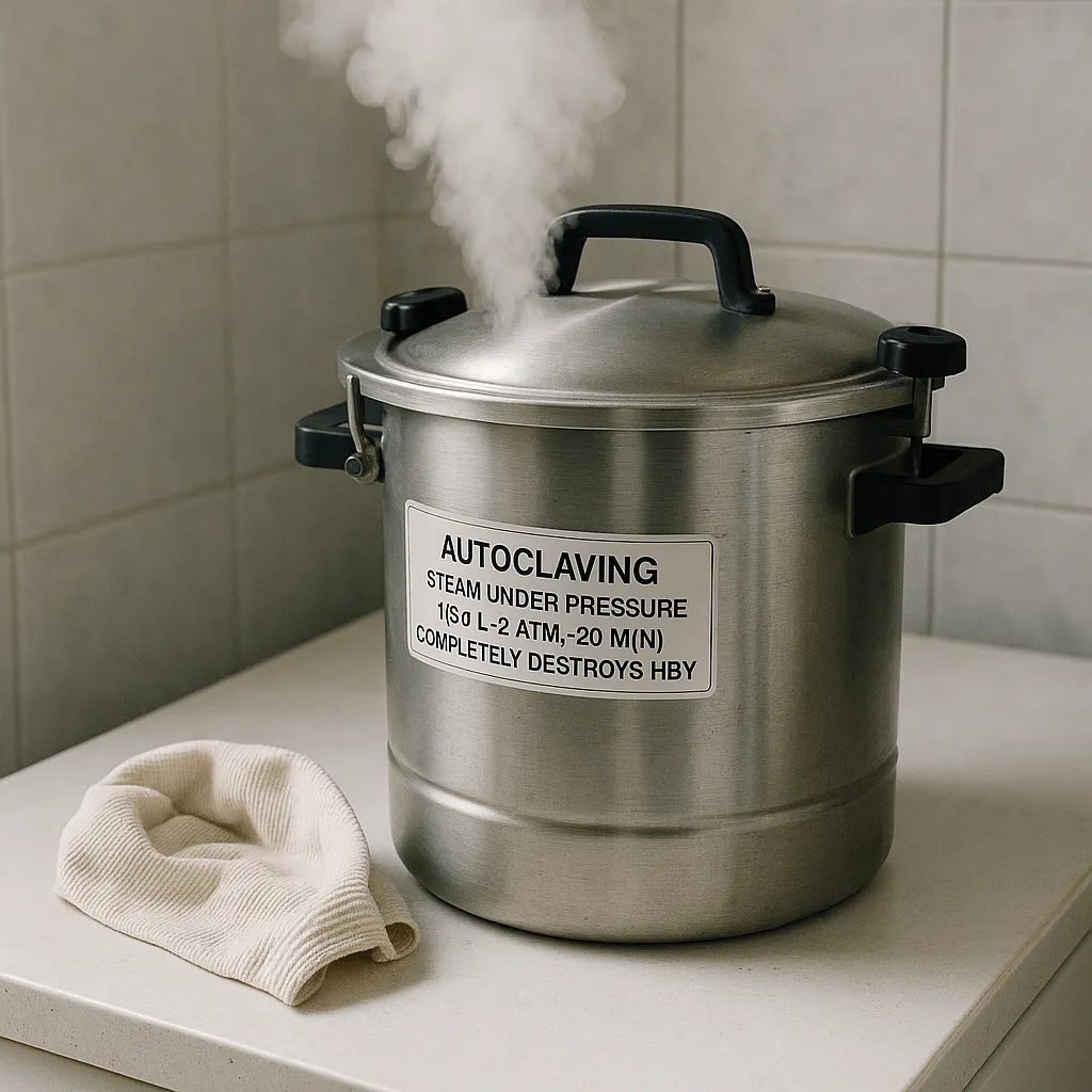 Пар под давлением (134 °C, 2 атм, 20 мин) полностью уничтожает вирус HBV.