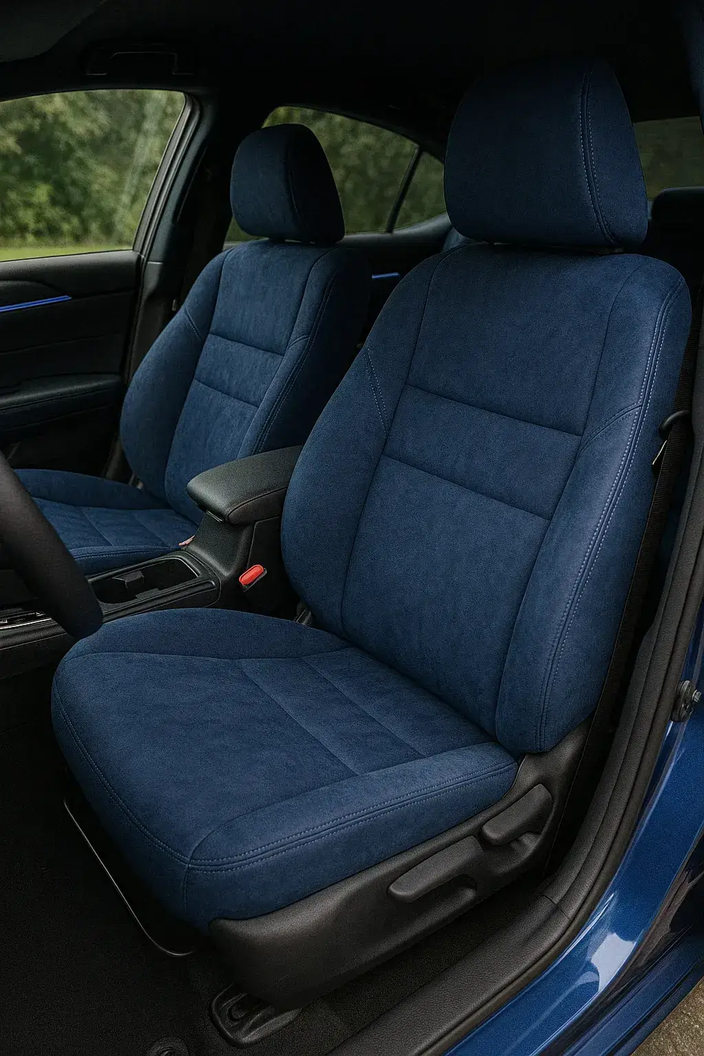 Используем экокожу AUTOLEDER и алькантару TORAY (Япония). Срок службы — 5–7 лет, не трескается при −35 °C, сохраняет мягкость при +50 °C.