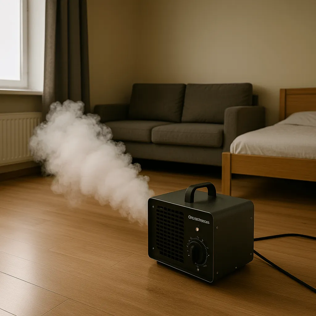 - Экспозиция 30–120 минут: добиваемся расчётной концентрации O₃ для разрушения молекул запаха и спор плесени в воздухе и на поверхностях.