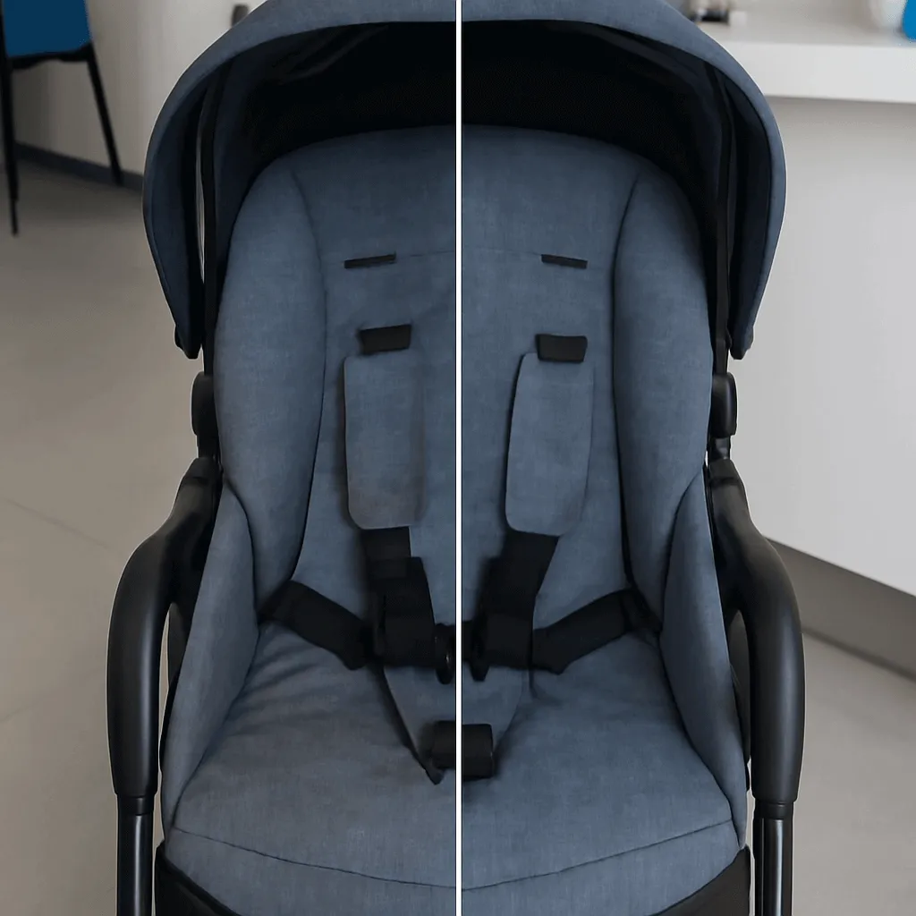 Многие родители пытаются почистить коляску с помощью обычной влажной уборки или домашней химии. Однако такие методы часто не справляются с глубокими загрязнениями. Волокна обивки, особенно в местах, где часто соприкасаются с малышом, поглощают пыль, шерсть домашних животных, остатки пищи, пот и выделения ребенка.