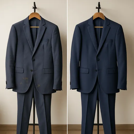 Точечная химчистка, удаление жирных и кофейных пятен, освежение цвета и восстановление формы костюма |