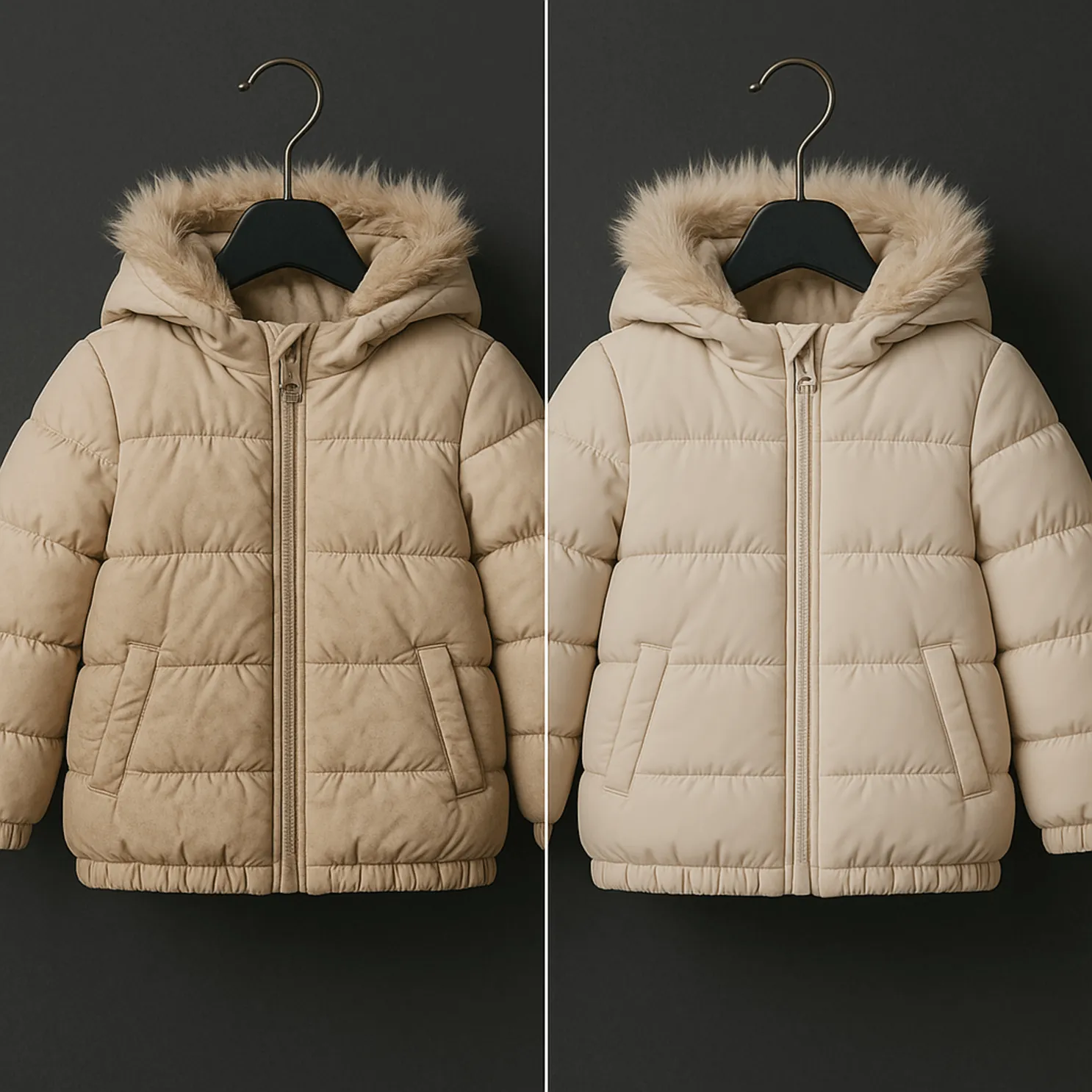 Чистим не только внешний слой, но и внутреннюю часть. Обрабатываем подкладку, швы и воротники, чтобы ваш пуховик был чистым и снаружи, и внутри.