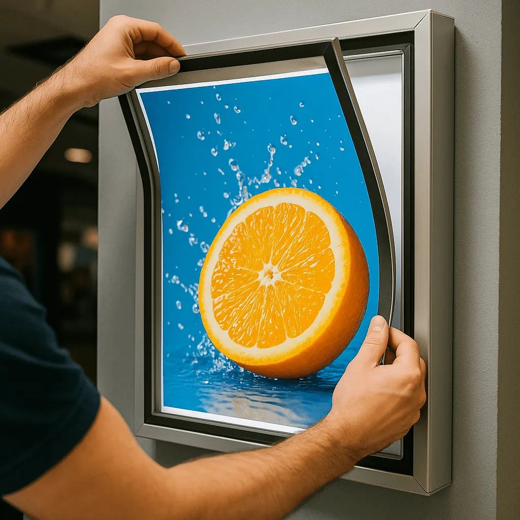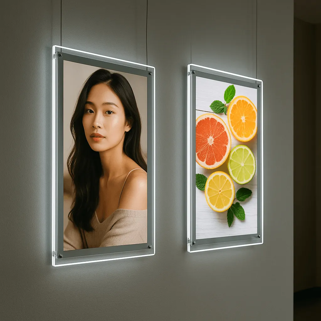 Способ монтажа тоже играет роль. Чаще всего наружные короба крепятся непосредственно на фасад здания – такой настенный лайтбокс плотно прилегает к стене и служит частью оформления витрины или входной группы. Другой вариант – подвесные консольные конструкции, которые фиксируются сбоку фасада и выступают над тротуаром. Для внутренних пространств, выставок или торговых залов часто используют мобильные напольные стойки: напольный лайтбокс устанавливается на специальной подставке. Существуют сверхтонкие панели, которые крепятся прямо на стекло – идеальное решение для витрин, когда конструкция размещается прямо в окно магазина и транслирует рекламное сообщение на улицу. Какой бы способ установки вы ни выбрали, важно, чтобы конструкция была надежно закреплена и находилась на оптимальной высоте для обзора.