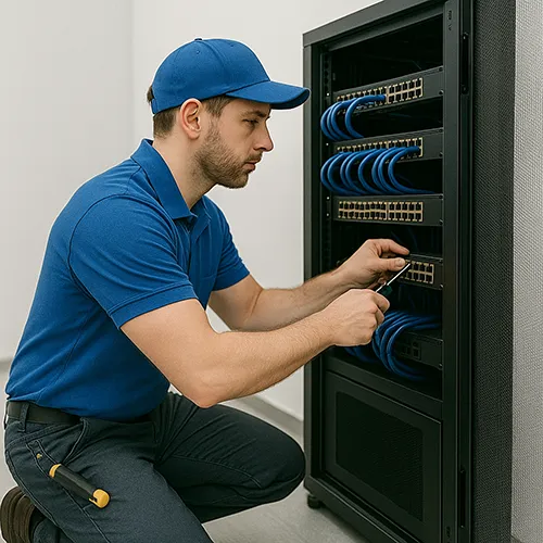 - Сборка серверного шкафа: Установка коммутаторов, маршрутизаторов и другого активного оборудования.