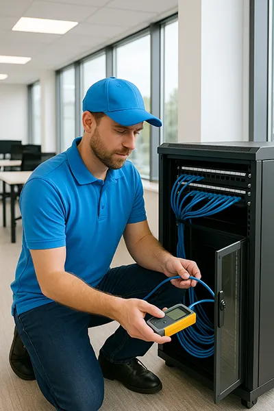 Совет эксперта от Армана Жолдыбаева, инженера-проектировщика СКС: «Настаивайте на полном тестировании каждой линии сертификатором. Простая «прозвонка» не показывает реальное качество линии. Только этот прибор гарантирует, что кабель категории 6А выдаст заявленные 10 Гбит/с на всей длине. Это страхует от скрытых дефектов и проблем с производительностью в будущем».