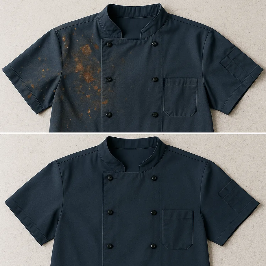 Что требуется | Удаление пятен жира, соусов и запахов кухни, сохранение формы ткани |