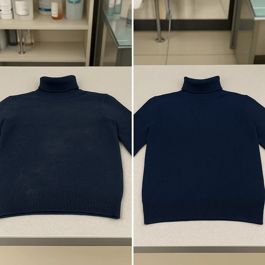 Обработка шерстяных изделий проходит поэтапно. Сначала мастер осматривает изделие, определяет плотность и цвет ткани — тонкий меринос, плотный трикотаж, кашемир или мохер. Затем удаляются локальные загрязнения: пятна смачивают специальным раствором или очищают щеткой. После этого вещь аккуратно стирают при низкой температуре вручную или на деликатном режиме машины. Каждый шаг направлен на сохранение структуры волокон: ткань не растягивается, интенсивность обработки тщательно регулируется. На заключительном этапе материал тщательно полощут, слегка отжимают без выкручивания, а затем изделие раскладывают для сушки в расправленном виде. Это позволяет сохранить форму и избежать деформации.