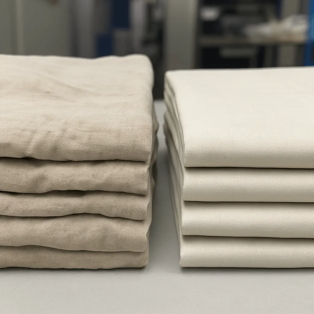 Следом идет утюжка — важнейший этап для гигиены. Температура нагрева подбирается под состав материала: хлопок, сатин, бязь или тенсел требуют разного подхода. Используются утюги с регулируемым паром, гладильные катки и отпариватели с защитой от накипи. Профессиональная обработка разглаживает изделия без заломов, а значит — снижает риск раздражений кожи и повышает эстетическое восприятие.