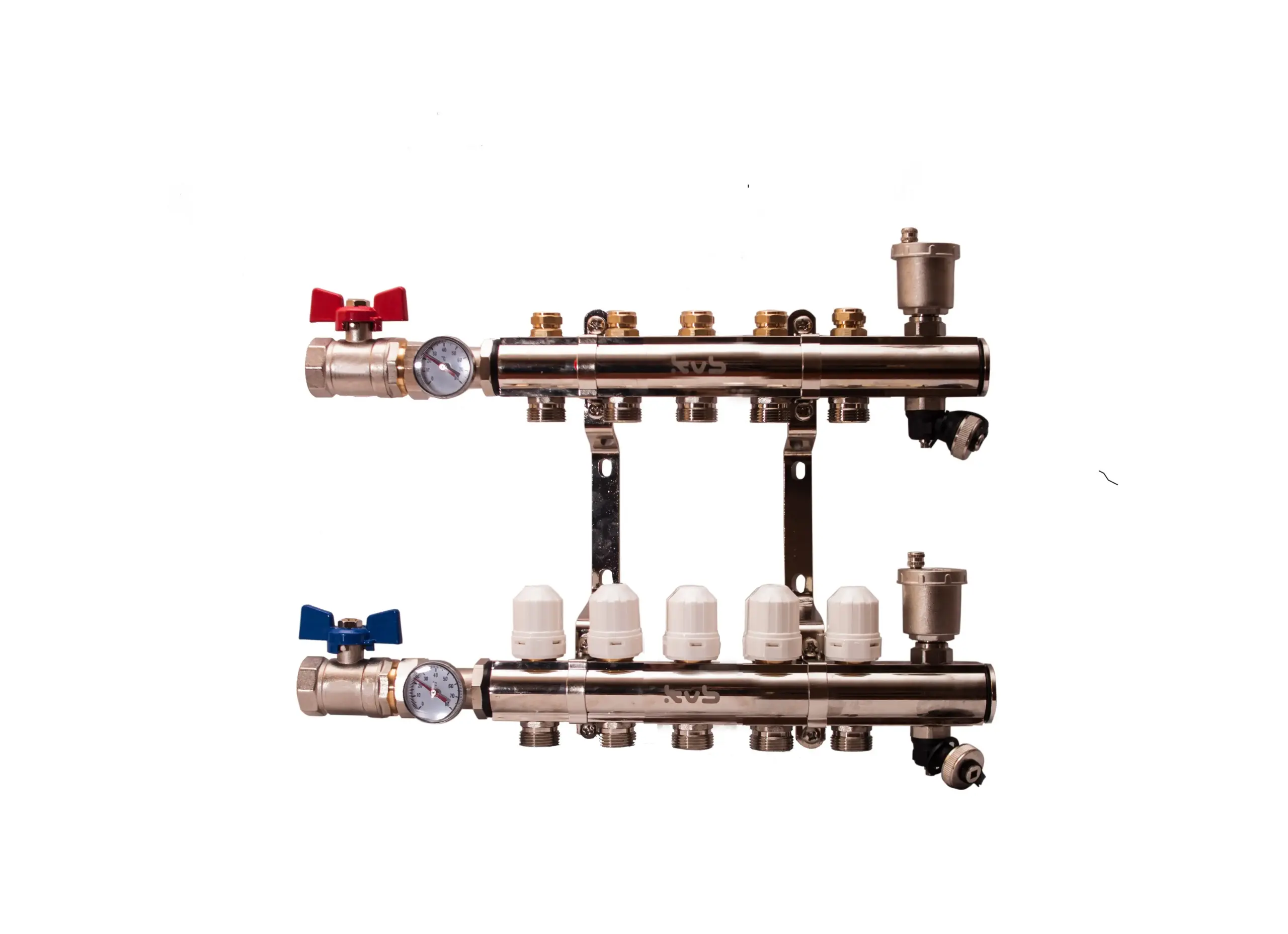 Существуют латунные, стальные, пластиковые и комбинированные коллекторные распределители. Различаются они по числу отводов, наличию запорной арматуры, расходомеров, термостатов.