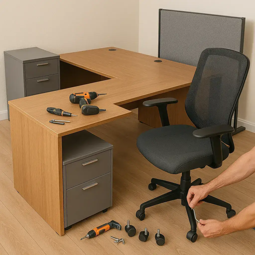 | Офисный стол/тумба/раб. место | от 5 000 за место | 45–120 минут | Сборка мебели, выравнивание, крепёж кабель-каналов | Сборка стекла, перегородок, скрытый кабель-менеджмент |