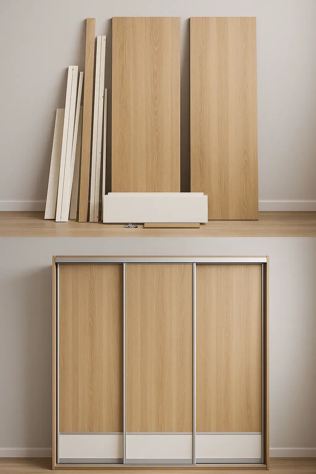 | Шкаф-купе | от 10 000 | 2,5–5 часов | Монтаж рельсов, установка дверей, регулировка роликов | Выровнять неровные стены/пол, встроенные полки |